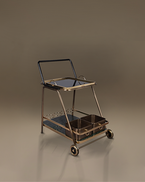 Decatur Bar Cart has also two wheels, containers and bottle holders. Distilling elegance, Decatur Bar Cart will be the exquisite touch to your project/space, where style stays still.