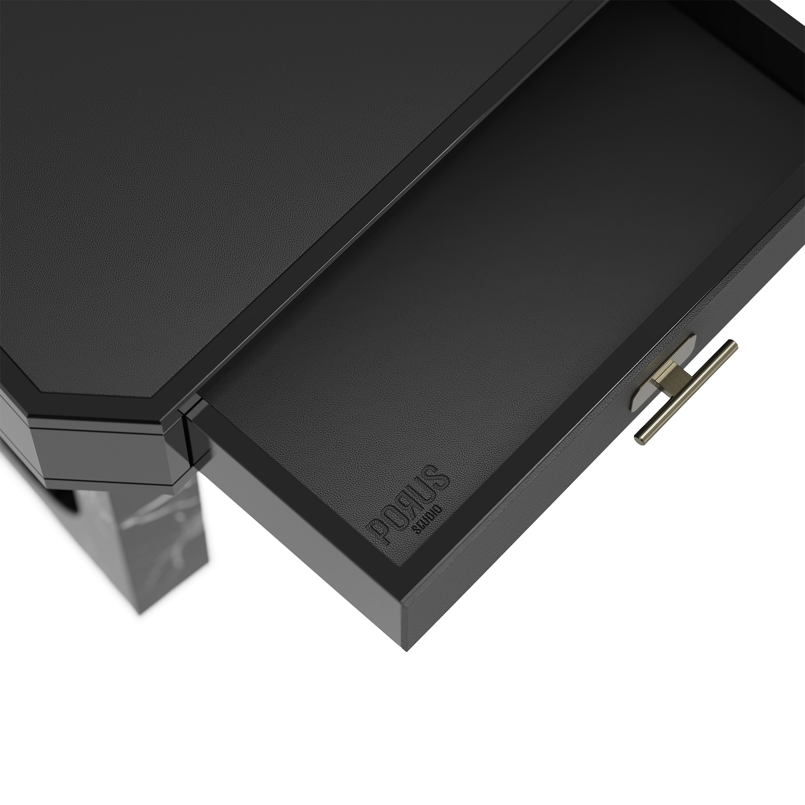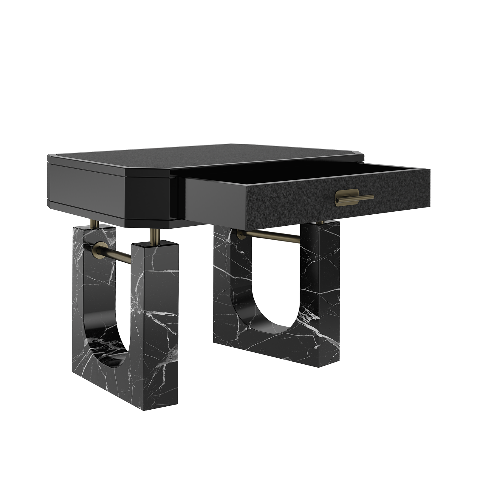 Inspired by such a mark of a nation, Porus Studio created the unforgettable mid-century modern Lincoln bedside table. The exquisite and handcrafted luxury Lincoln bedside table has a drawer finished in black high gloss varnish, contrasting with the main structure in Negro Marquina marble and aged brushed brass.
