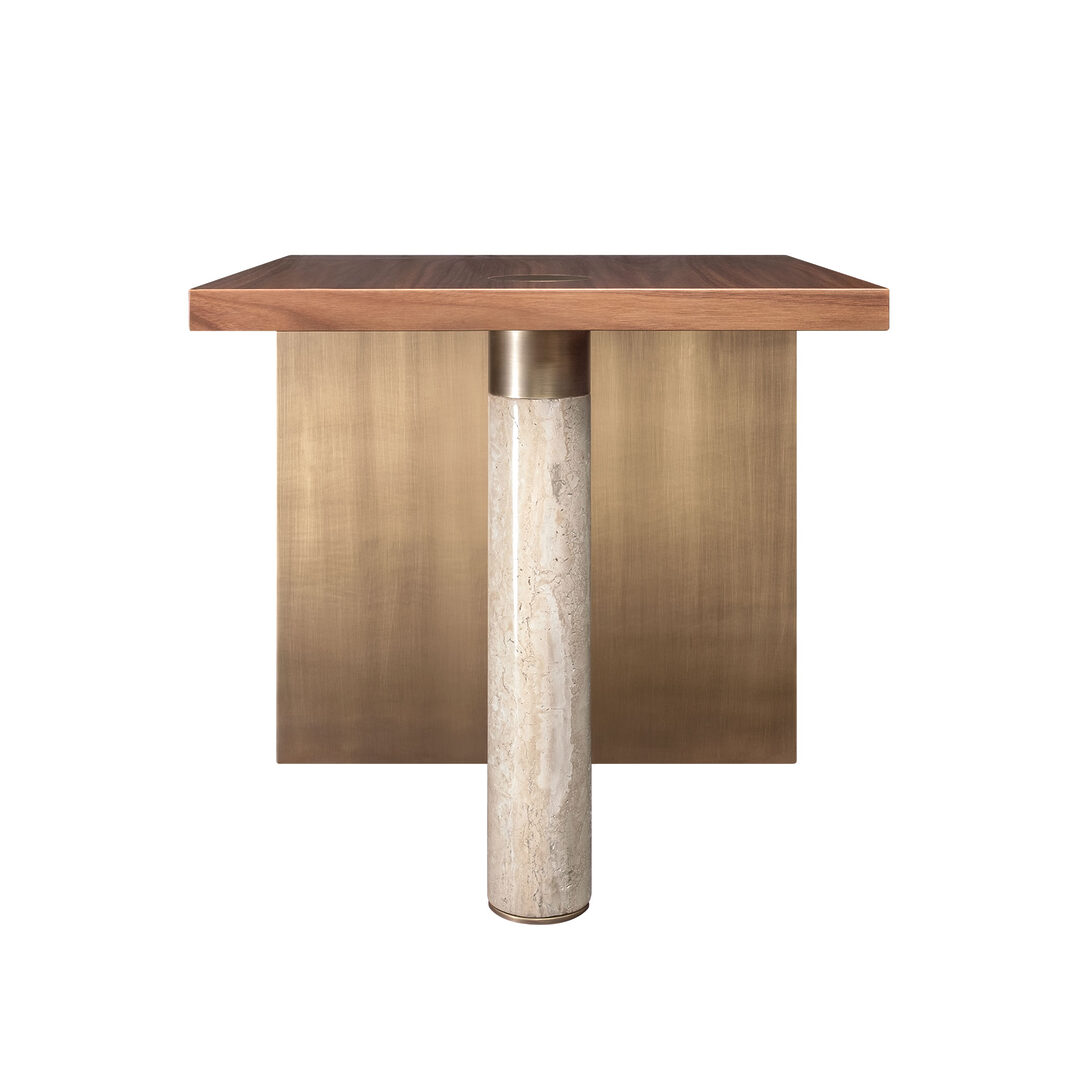 | Materials and finishes: | Structure: Walnut, Travertine and Brushed Gold Stainless |