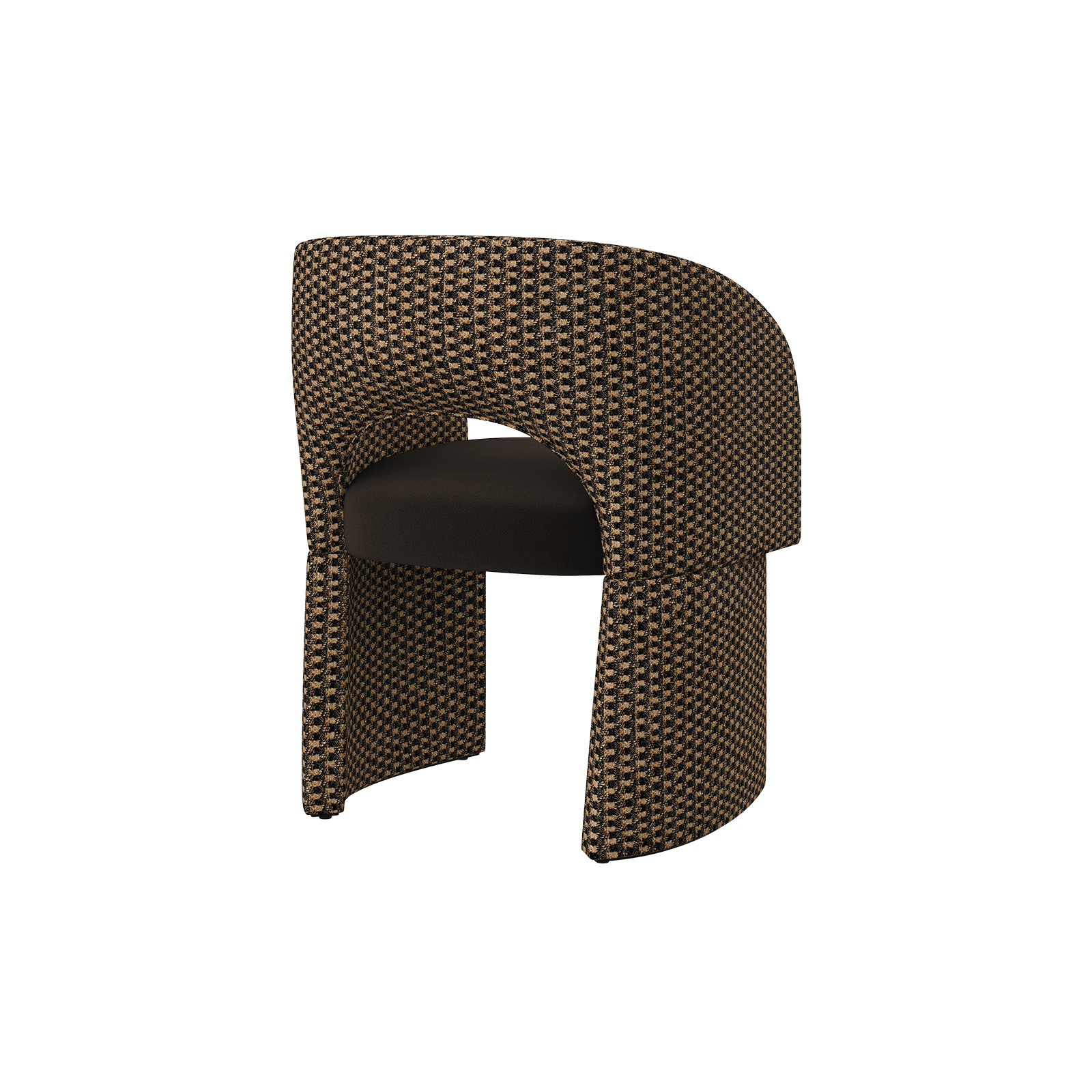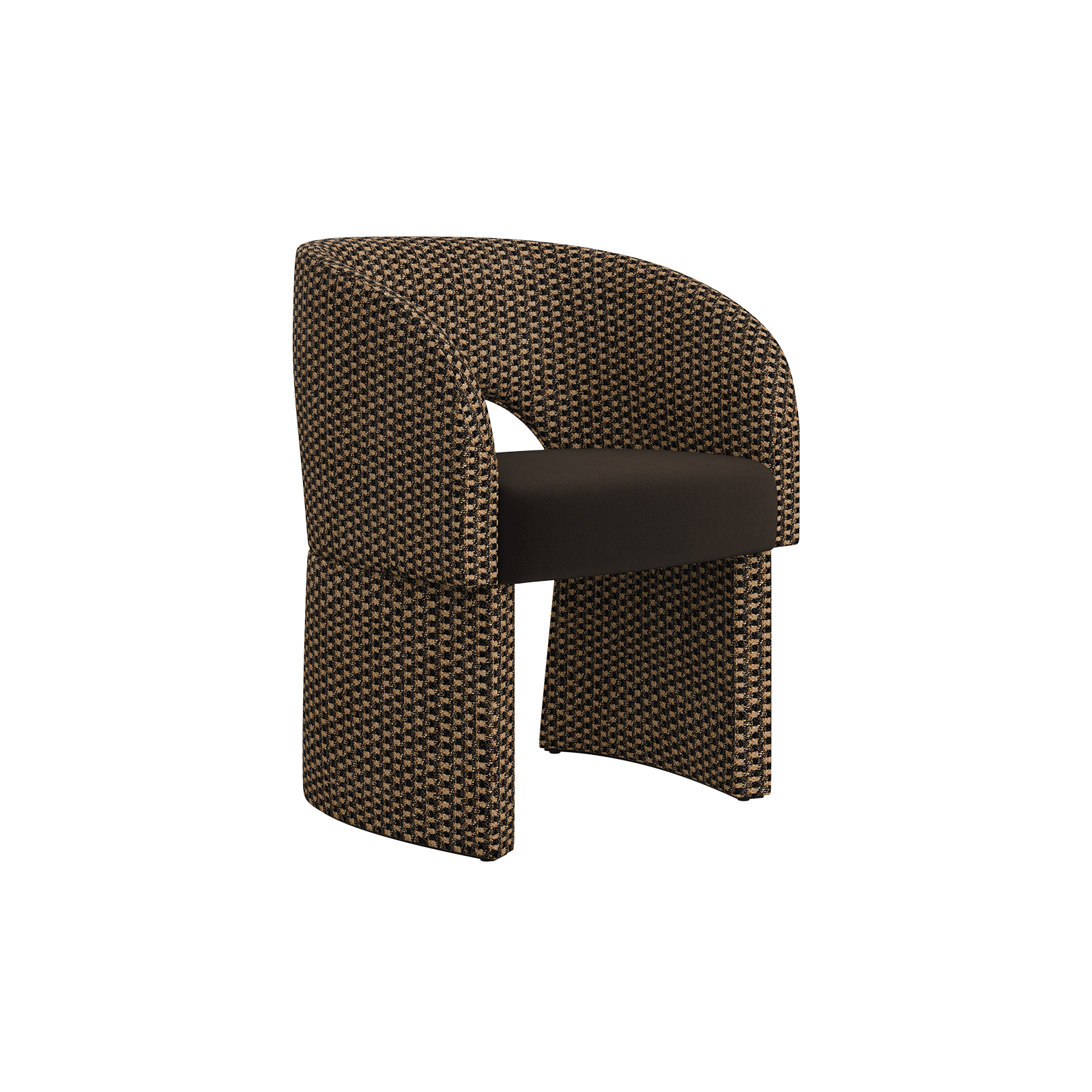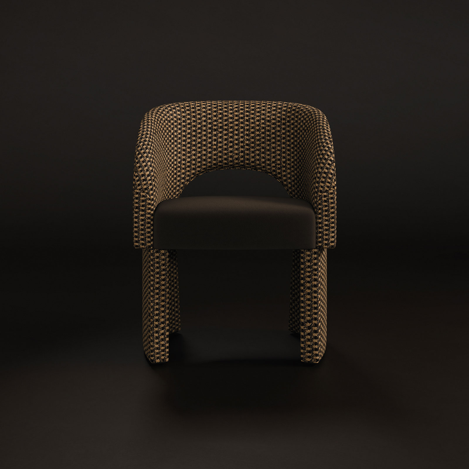 Anchored by a bold structure, the Montana Dining Chair balances softness and solidity with a refined sophistication. Upholstered in tweed and velvet, its contours gently embrace the body, transforming every moment of seating into an experience of ease and refined comfort.